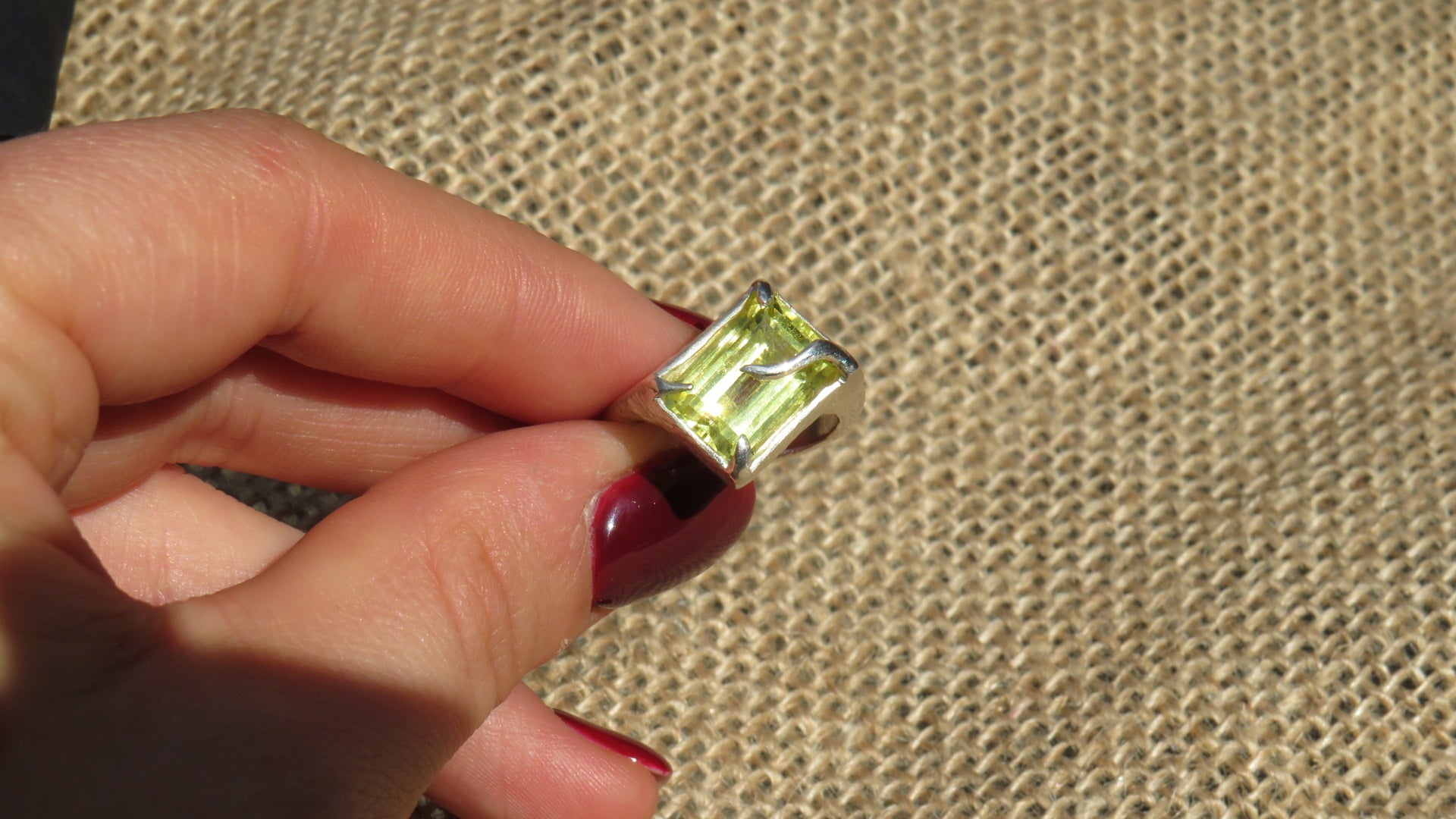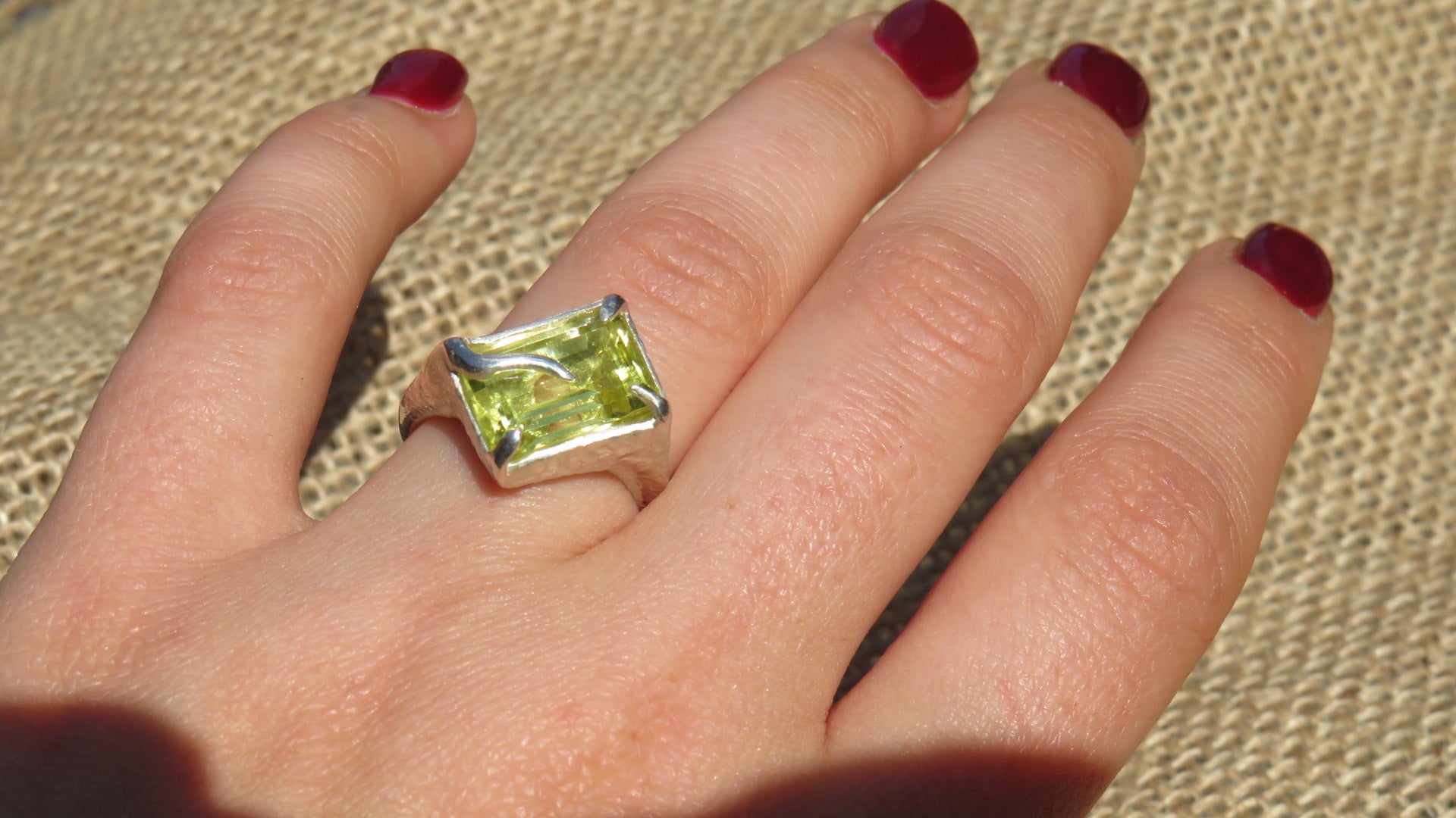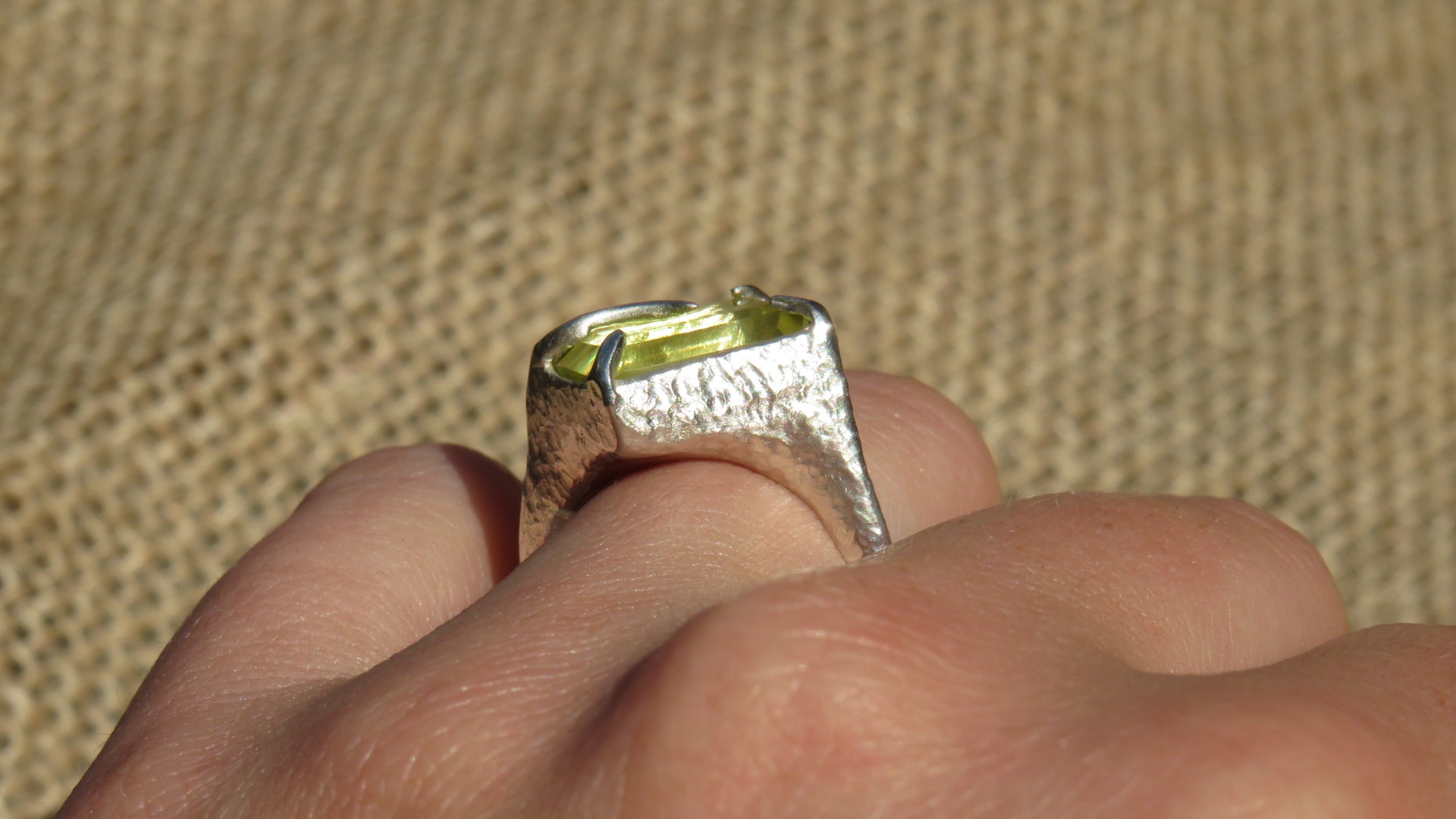 This absolute showstopper holds a refreshing Lemon Quartz. Held in by 4 claws, one being longer than the other.
