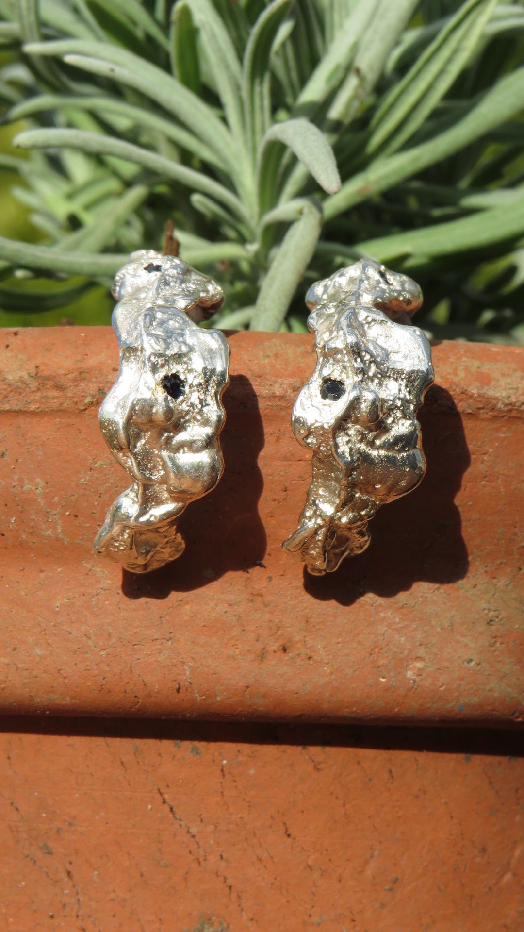 Hand carved in wax and cast in sterling silver. Set with Sapphires.