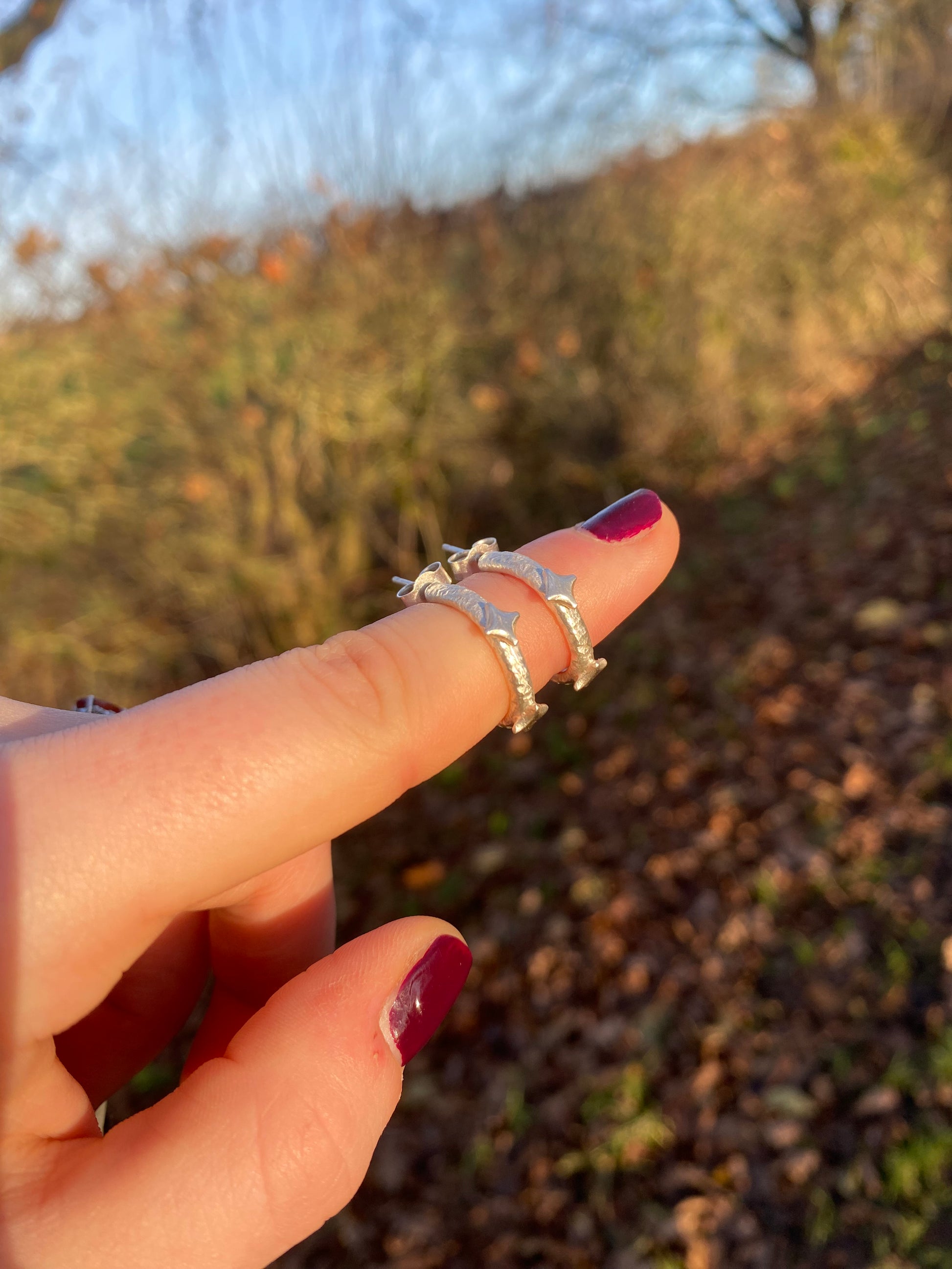 Organic textured hoops with 3 little stars. Simple with a little sparkle. Perfect for everyday wear.