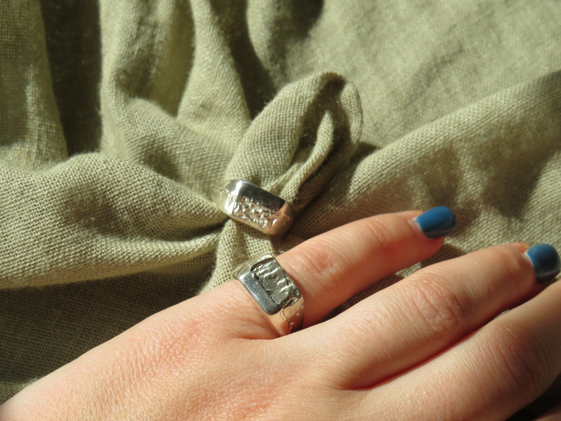 Hand carved in wax and casted in 925 sterling silver. Please note that due to the handmade nature of the piece all rings will come out slightly different so there may be a slight variation compared to the image shown.