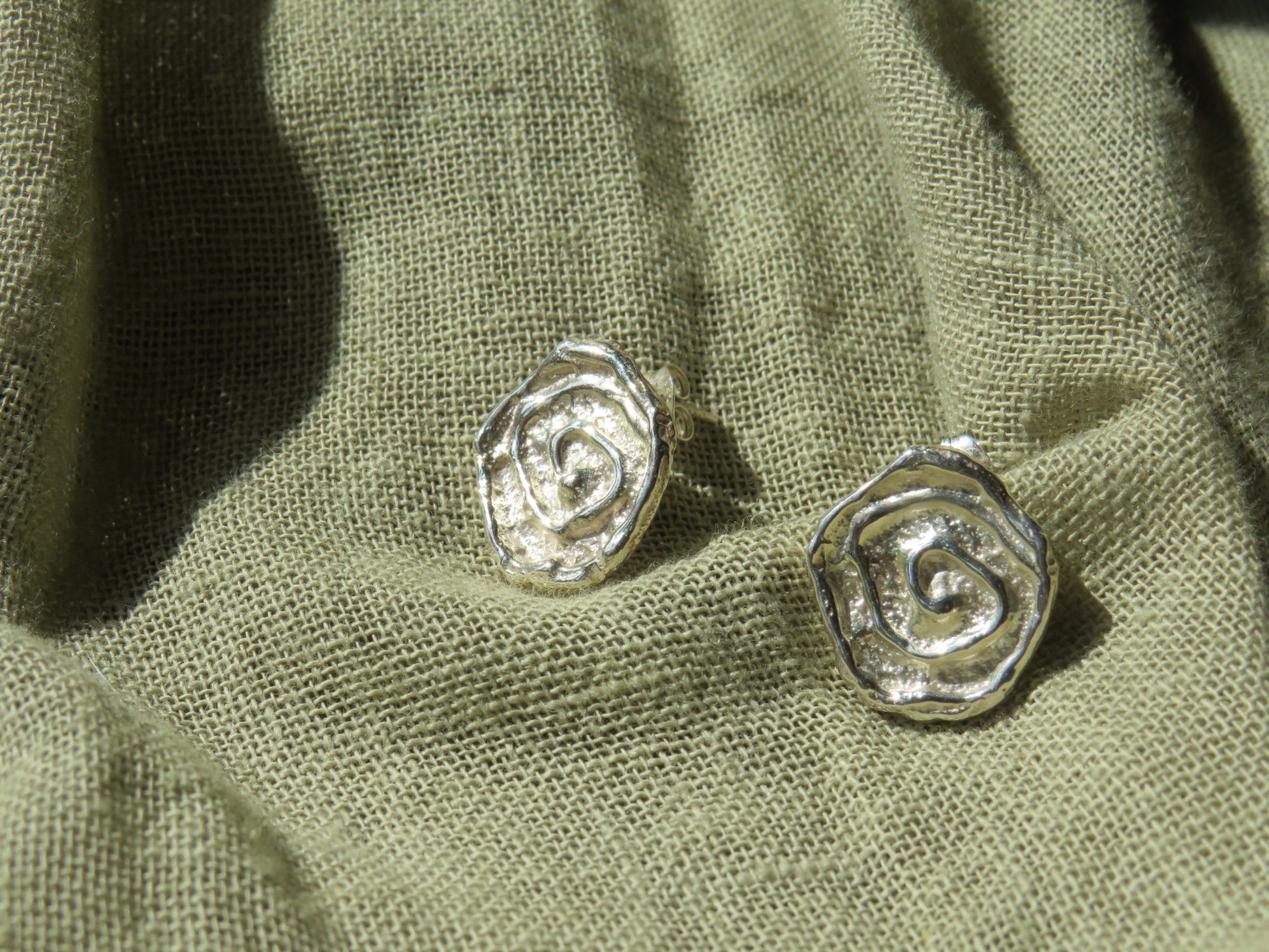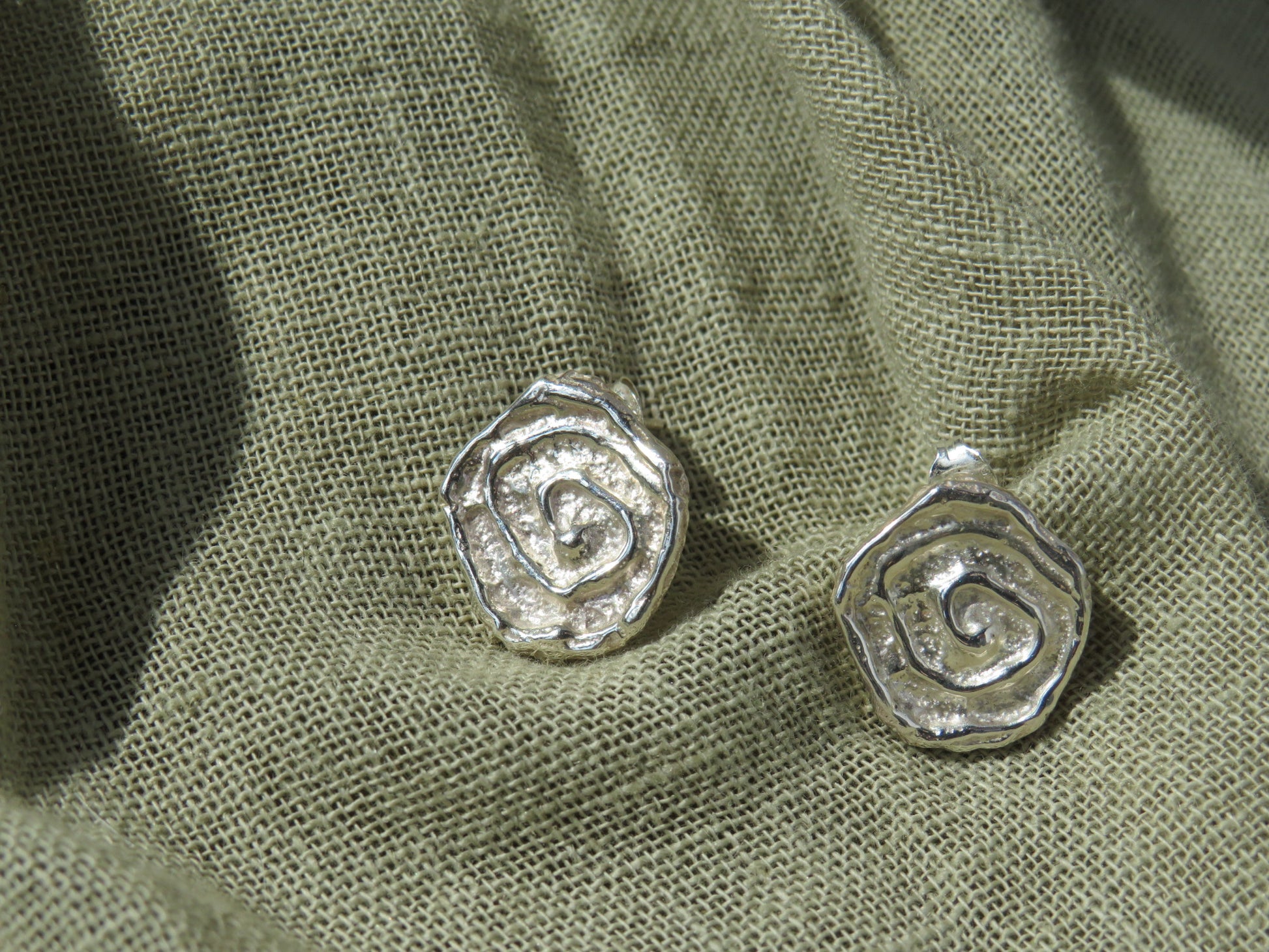 These coin shaped spiral earrings are handcrafted in sterling silver. They are lightweight and perfect for everyday wear.